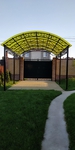 Арочный навес с поликарбонатом и ковкой для машин перед воротами