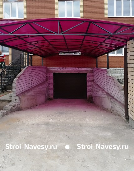 Арочный навес из металлопрофиля с поликарбонатом для въезда на подземную парковку